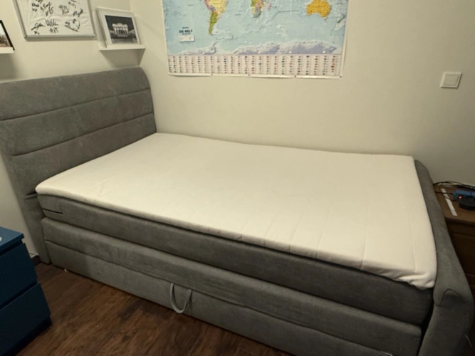 Boxspringbett 120 x 200 mit Bettkasten und Rückenpolster, wenig benutzt zum Abholen zu verschenken
