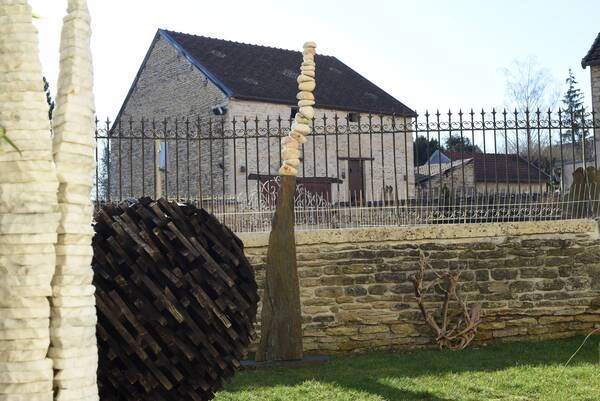 Entdecken Sie eine einzigartige Skulptur, die aus Holz und Steinen gefertigt ist. Diese beeindruckende Bildhauerei zieht alle Blicke auf sich und verleiht jedem Garten eine besondere Note.