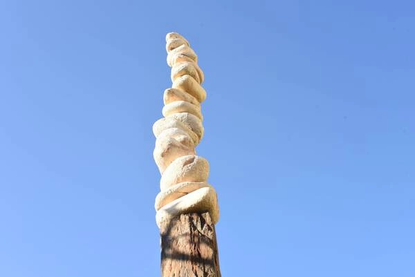 Einzigartige Skulptur aus Holz und Steinen