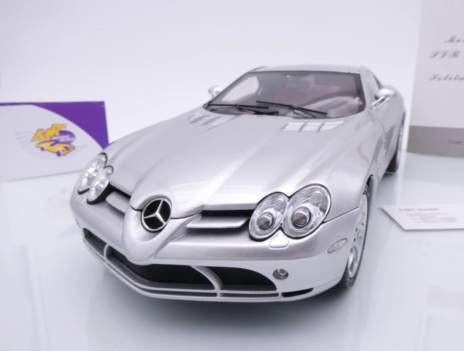 Mercedes Benz SLR McLaren AMG Baujahr 2003 in " silbermetallic " mit schwarz-roter Innenausstattung . No. 0008 !!
