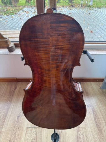 Zum Verkauf steht ein 7/8-Cello, Modell Stradivari Gore Booth, gefertigt von Dumitru Pop. Baujahr: 2025. Zuverlässiger, sehr ausgewogener Klang mit warmen und vollen Bässen. Ausstattung: Jargar Classic Saiten, Akusticus Saitenhalter, Roth & Junius Endknopf, Ebenholzwirbel.