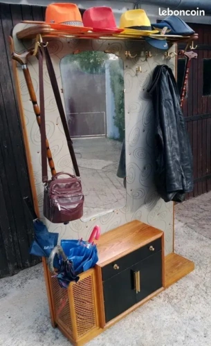 rare ce superbe vestiaire porte manteau Vestiaire porte manteaux est déco en chêne .antique dimensions 1.84 M x 1.23 M 1 tiroir 2 portes Il est composé de doubles patères , et 1 récepteur pour les parapluies très bon 180 €