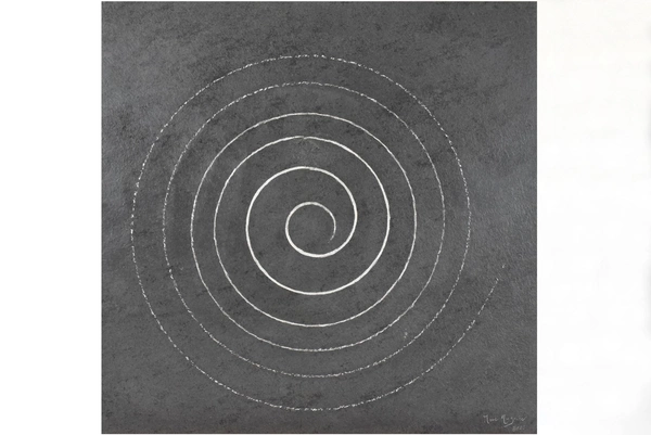 Entdecken Sie eine einzigartige Malerei, die durch ihre spiralförmigen Linien besticht.