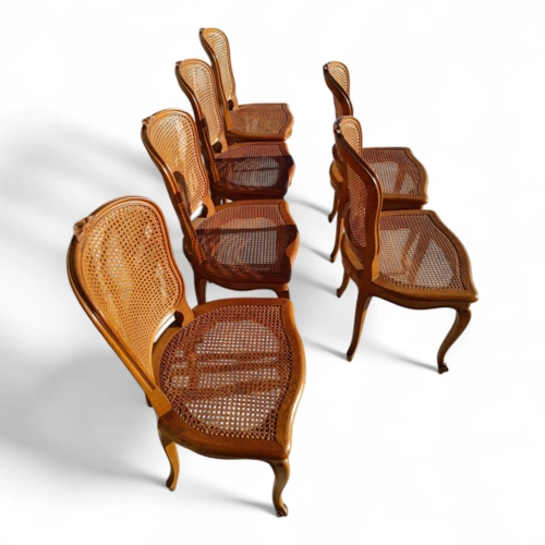 Krzesła wykonane są z najwyższej jakości drewna i wyróżniają się starannym wykonaniem oraz plecionym wzorem.