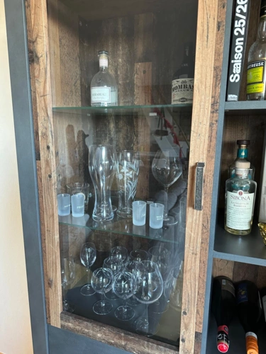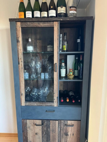 Maße auf Anfrage. Verkauf nur vom Sideboard, der Waldplatte und des Schrankes, ohne Inhalt / TV.